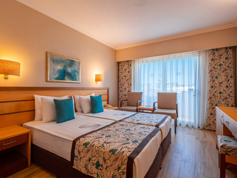 • Klimaanlage • Balkon (je nach Zimmerkategorie) • Haartrockner • Minibar (gegen Gebühr, kostenfrei) • Safe (gegen Gebühr) • Meerblick (je nach Zimmerkategorie: seitlich) • Kaffee-/Teezubereiter • Fernseher • rollstuhlgerechte Zimmer (auf Anfrage) • WiFi (kostenfrei) • Terrasse