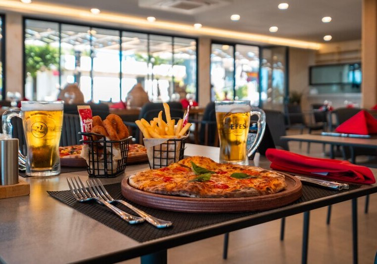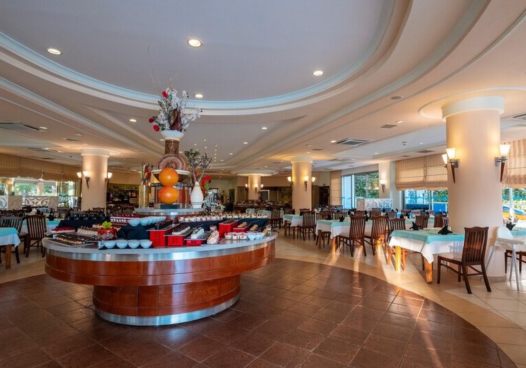 • Bars & Snackangebote • Restaurant (nur bei AI inklusive, Buffet, Klimaanlage, Raucher, Olympos Main Restaurant, rollstuhlgeeignet, Europäische Speisen, Fast Food, Pizza, Steak, glutenfreie Speisen, keine Badebekleidung (Dresscode), keine Haustiere erlaubt, im Hauptgebäude, WiFi (High speed), Champagner, Wein, familien- und kinderfreundlich, Salate) • Snackbar (Azure Restaurant, nur für Gäste)