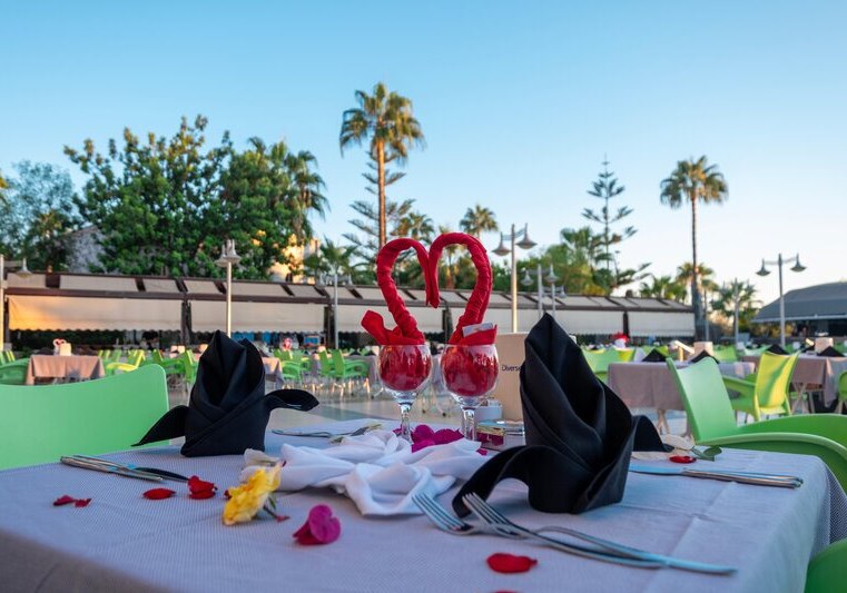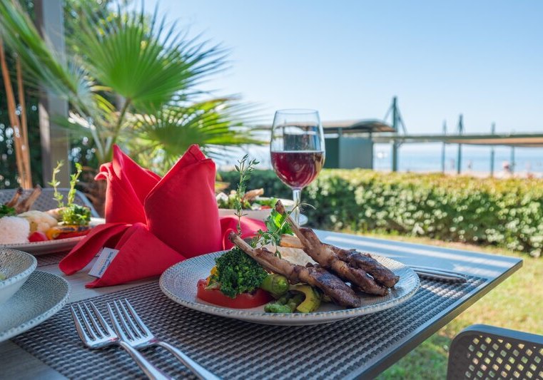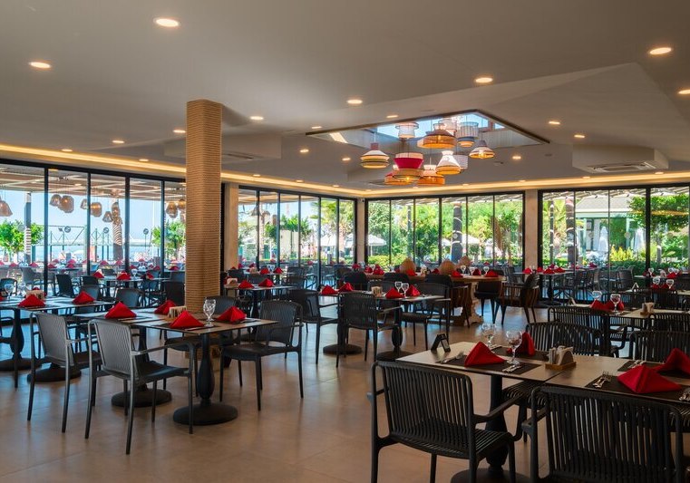 Die Gastronomie kombiniert ein Buffetrestaurant mit Terrasse und ergänzenden À-la-carte-Restaurants. Morgens, mittags und abends esst Ihr im Rahmen Eurer gewählten Verpflegung, All-Inclusive steht ebenso zur Verfügung wie Halbpension. Vegetarische Optionen und glutenfreie Mahlzeiten sind vorgesehen; alkoholfreie und alkoholische Getränke begleiten den Tag.