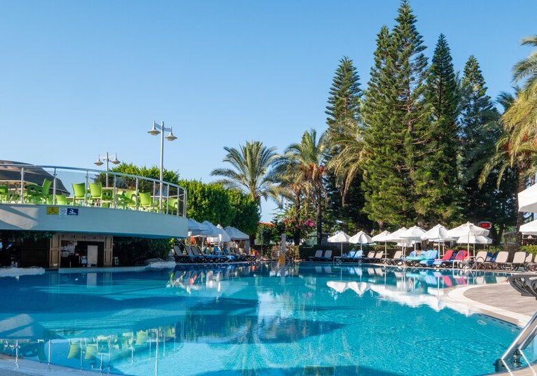 Abends trifft man sich an der Poolbar oder in der Lobbybar, gelegentlich begleitet von Livemusik oder Folklore. Die Küche setzt auf Buffets mit Terrasse und ergänzenden À-la-carte-Optionen; Snacks und Strandbars halten den kleinen Hunger in Strandnähe in Bewegung. Ihr entscheidet zwischen All-Inclusive und weiteren Verpflegungsvarianten und gestaltet Eure Tage zwischen Strand, Pool, Hallenbad und kurzen Ausflügen nach Side, das nur etwa vier Kilometer entfernt liegt.