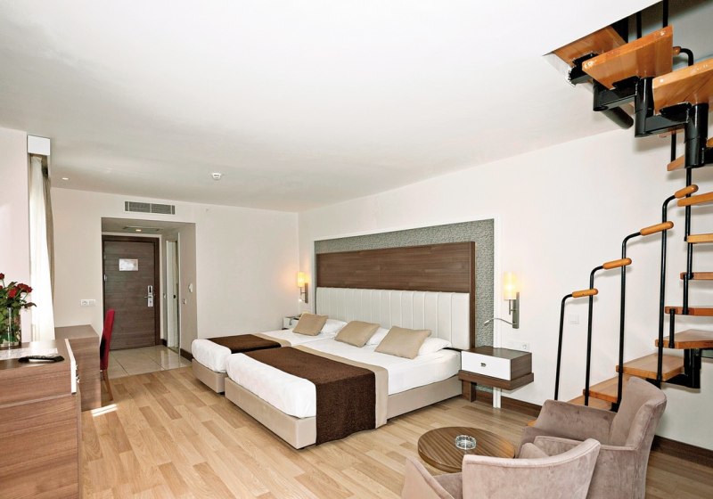• Klimaanlage • Balkon (je nach Zimmerkategorie) • Endreinigung • Haartrockner • Sitzecke (je nach Zimmerkategorie) • Minibar • Telefon • Safe • Schlafsofa • Fernseher (Sat-TV) • rollstuhlgerechte Zimmer (auf Anfrage) • WiFi • Gartenblick • Bergblick • Poolblick • Straßenblick • Wasserkocher • Terrasse