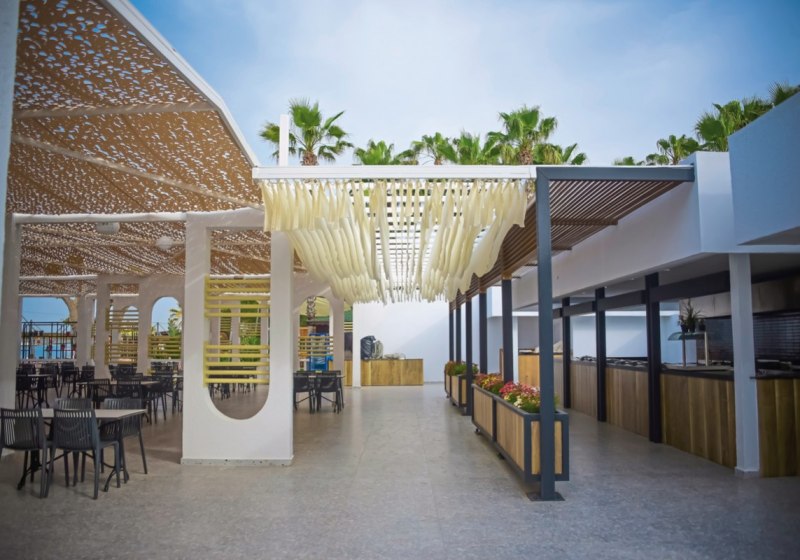 • Bars & Snackangebote (nur bei AI inklusive, rollstuhlgeeignet) • Restaurant (stundenweise, Buffet, mit Außenbereich, Kinderhochstuhl, Klimaanlage, à la carte) • Snackbar (stundenweise, nur bei AI inklusive) • Lobbybar (rollstuhlgeeignet, Klimaanlage, 24h) • Bar/Lounge