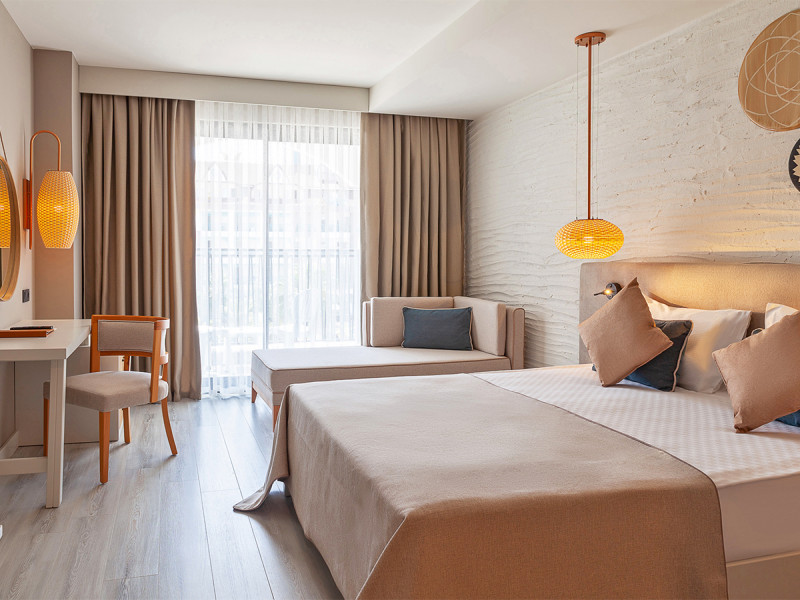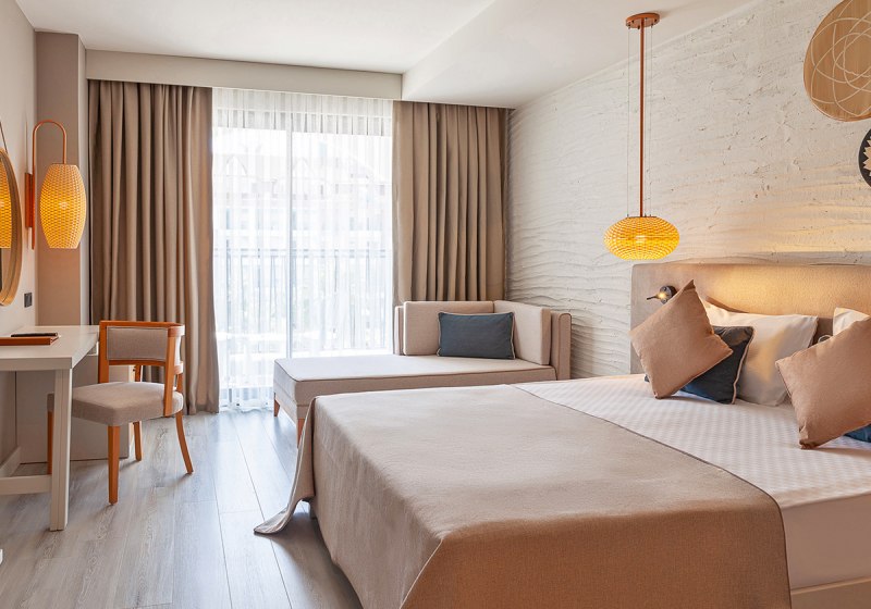 • Klimaanlage • Balkon (je nach Zimmerkategorie) • Haartrockner • Sitzecke (je nach Zimmerkategorie) • Minibar (kostenfrei) • Safe (kostenfrei) • Schlafsofa • Kaffee-/Teezubereiter • Terrasse • Fernseher • rollstuhlgerechte Zimmer (auf Anfrage) • WiFi (kostenfrei) • Poolblick • Babywanne (auf Anfrage) • Wasserkocher • Schallisolation
