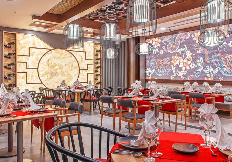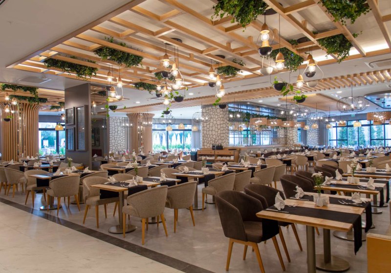 - Hauptterrasse: Hauptrestaurant mit Terrasse und Live-Kochen zu den Mahlzeiten.