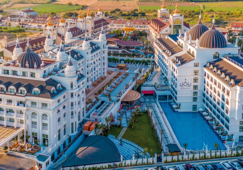 Side Royal Style Hotel kombiniert kurze Wege zum hoteleigenen Sandstrand mit einer klar gegliederten Anlage. Pools, Rutschen und Miniclub bringen Struktur in Familientage, während Sauna, Hamam und Hallenbad ruhige Gegenpole setzen. Die Gastronomie überzeugt mit Hauptterrasse, Spezialitätenrestaurants und stimmigen Bars.