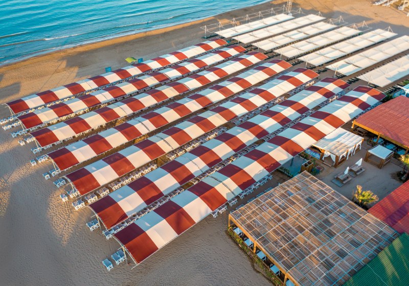 - Strandsetup: Liegen, Schirme und Badetücher am Strand inklusive.