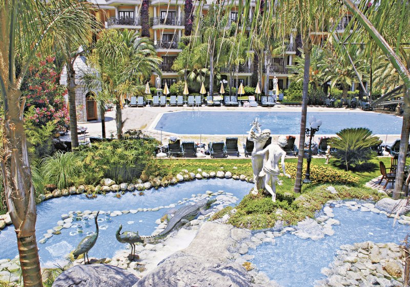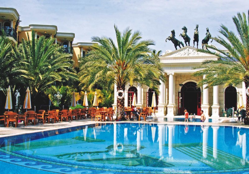 Im Yetkin Club Hotel erwartet Euch ein Strandhotel mit klarer Struktur, direkter Nähe zum Meer und einem Angebot, das Aktivität und entspanntes Badeleben verbindet. Der hoteleigene Sand-/Kiesstrand liegt bequem über eine Straßenunterführung erreichbar. In den Gärten und am Außenpool mit Kinderbereich findet Ihr ruhige Ecken, während Tagesanimation und Livemusik für Schwung sorgen.