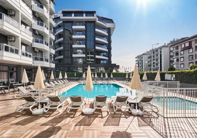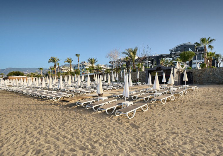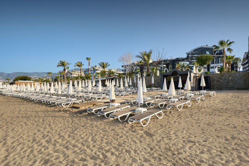 Ihr wohnt an der Küstenstraße, die den Sand-/Kiesstrand vom Hotel trennt. Eine Unterführung verbindet Euch direkt mit dem Ufer – praktisch, wenn Ihr zwischen Meer und Pool pendelt. Öffentliche Verkehrsmittel sind verfügbar, Alanyas Zentrum erreicht Ihr nach etwa 2,5 Kilometern. So bleibt Ihr flexibel zwischen Badetag und Stadtrhythmus. Laut Angabe liegt das Meer in kurzer Distanz, wodurch spontane Strandgänge leichtfallen.