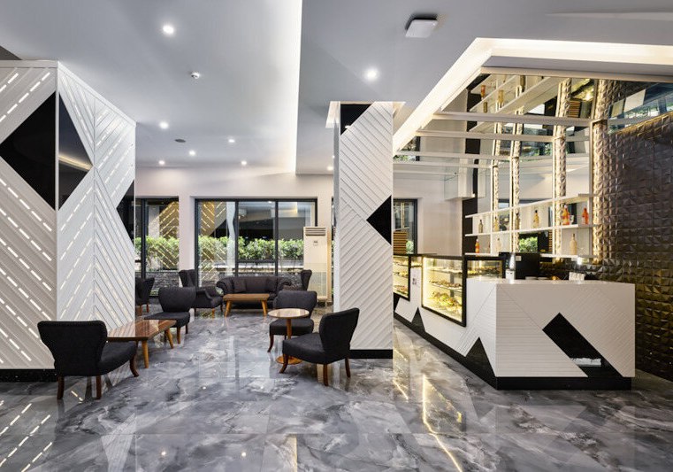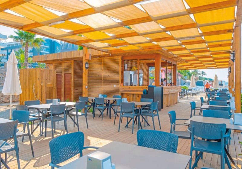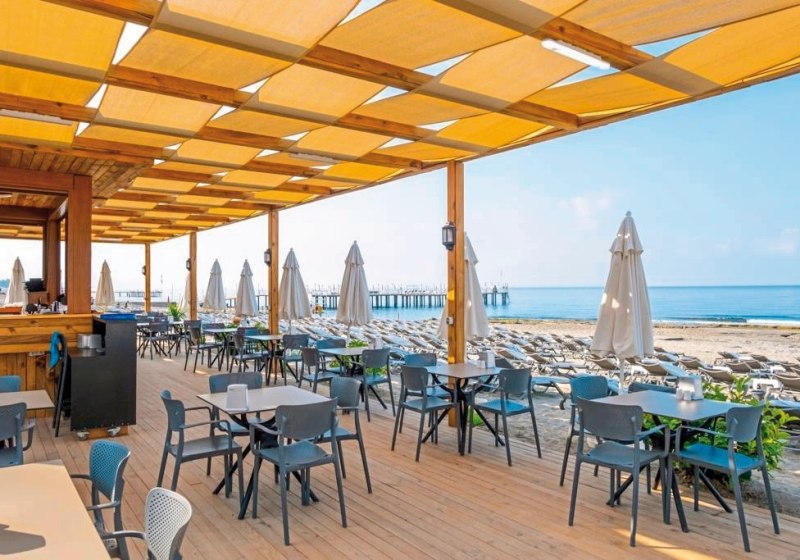Die Wege im Haus sind kurz, die öffentlichen Bereiche funktional und freundlich. In der Lobby mit Rezeption und Wi‑Fi plant Ihr Eure Ausflüge nach Alanya, im Shop und beim Friseur erledigt Ihr kleine Erledigungen bequem vor Ort. Kulinarisch führt der Tag vom Terrassenfrühstück im Hauptrestaurant zu Snacks an der Poolbar und abends zu Fisch- oder internationalen Gängen im À‑la‑carte-Restaurant. Highlight: Strandnahes Hotel mit Unterführung und Poolbereich mit drei Rutschen für aktive Tage.