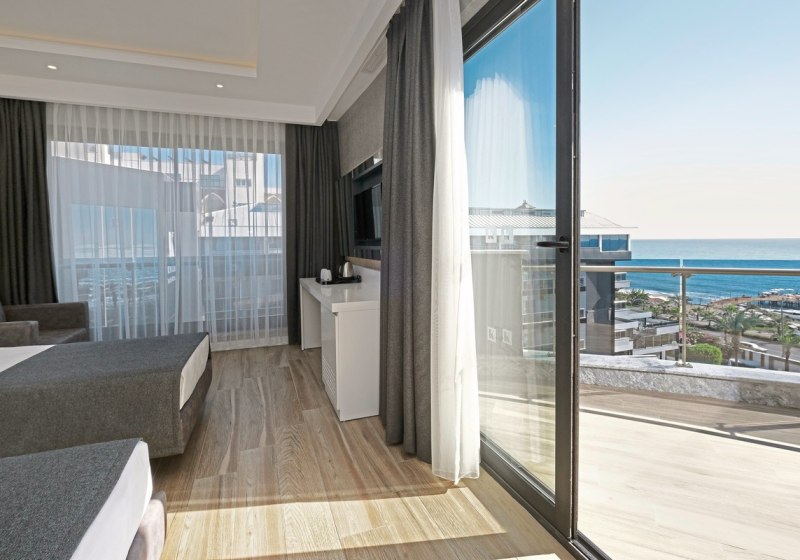 • Klimaanlage • Balkon (je nach Zimmerkategorie) • Haartrockner • Minikühlschrank • Minibar (kostenfrei, gegen Gebühr) • Safe (gegen Gebühr) • Meerblick (je nach Zimmerkategorie: seitlich) • Schlafsofa • Kaffee-/Teezubereiter • Terrasse • Fernseher • rollstuhlgerechte Zimmer (auf Anfrage) • WiFi (kostenfrei) • Balkon oder Terrasse • Stadtblick • Schallisolation • Pool (privat) • Steckdose