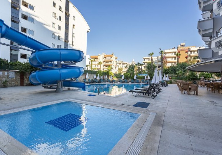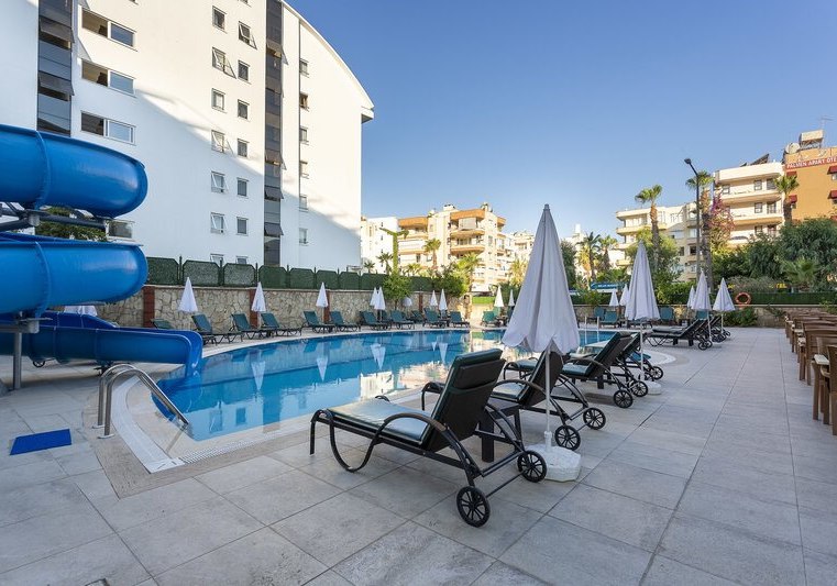 Im Kaila City Hotel taucht Ihr in ein stimmiges Stadthotel mit Strandnähe ein. Das Haus liegt in Alanya, im Ortsteil Obagöl, und verbindet lebendige Urlaubsenergie mit klarer Struktur. Die öffentlichen Bereiche wirken aufgeräumt, Wege sind kurz, und Ihr findet schnell Euren Lieblingsplatz – ob in der Empfangshalle, am Außenpool mit Sonnenterrasse oder im Café für eine ruhige Pause. Familien fühlen sich dank Kinderbecken und Spielplatz ebenso gut aufgehoben wie Paare, die einen unkomplizierten Bade- und Stadtmix suchen.