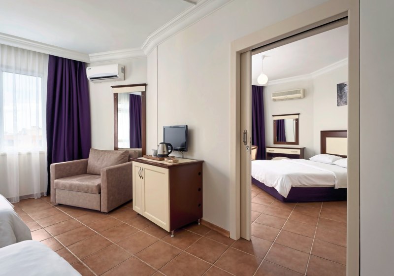 Für Familien gibt es Zimmer mit zwei Schlafzimmern und Verbindungstür – übersichtlich und praktisch, wenn Ihr Klarheit und Nähe wollt. Je nach Lage genießt Ihr Bergblick. Zusatzbett oder Schlafsofa schaffen Flexibilität. So richtet Ihr Euch für Strandtage, Stadtbummel und ruhige Abende gleichermaßen passend ein.