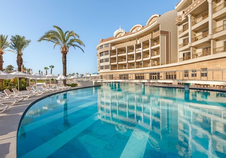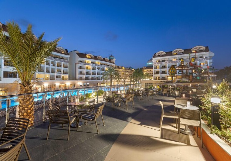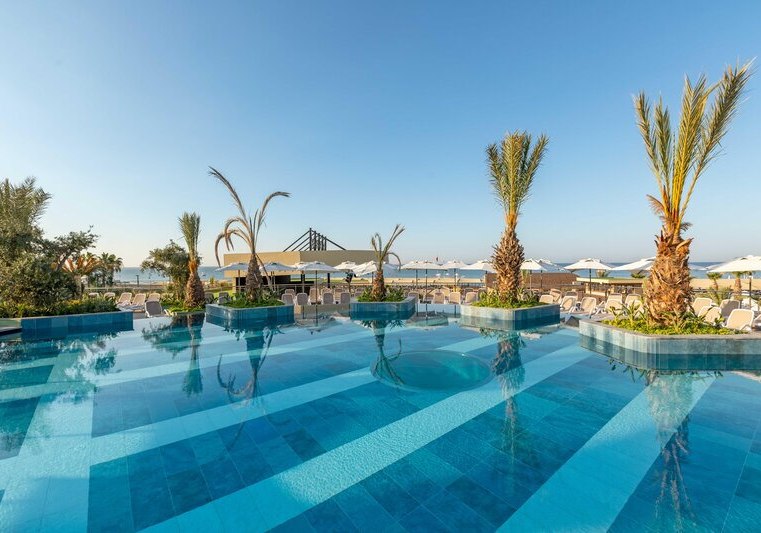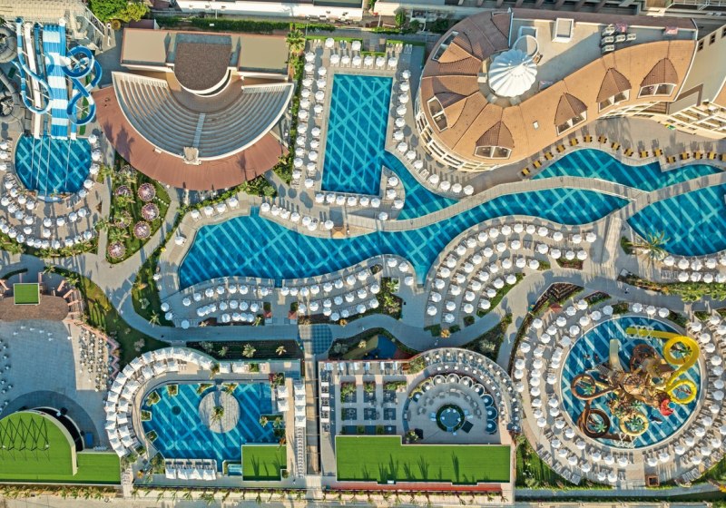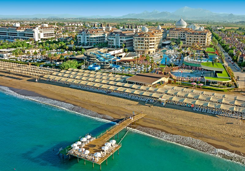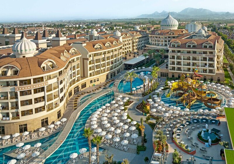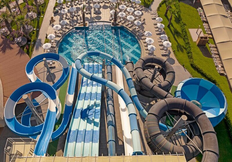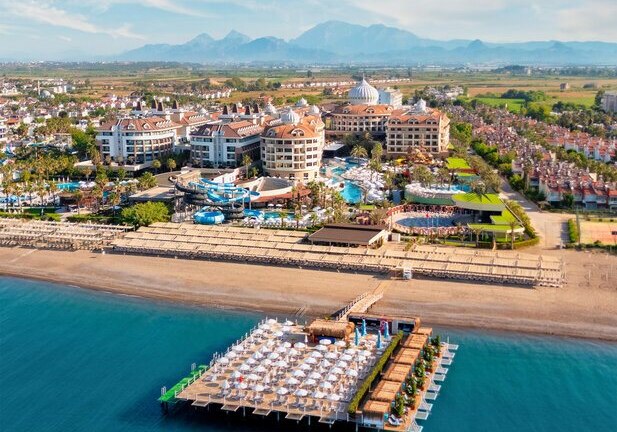 Kirman Belazur Resort & Spa kombiniert direkte Strandlage, vielfältige Pools mit Rutschen und abendliche Shows zu einem klar strukturierten Aufenthalt. Ihr wechselt leicht zwischen Aktivität und Ruhe, mit kurzen Wegen vom Zimmer zum Strand, zur Pier-Bar oder ins Spa.
