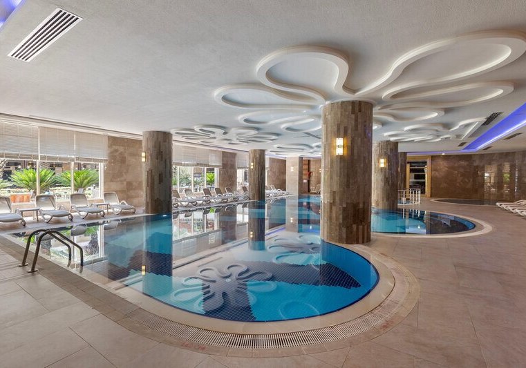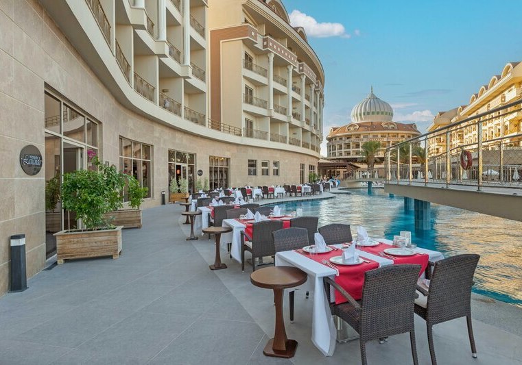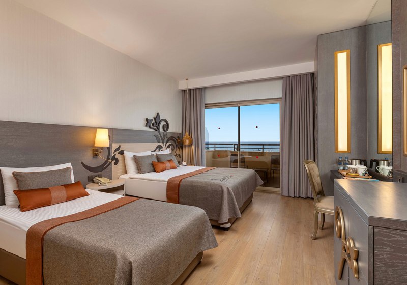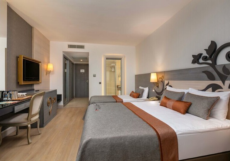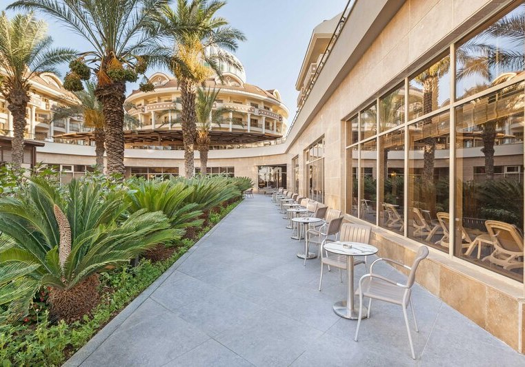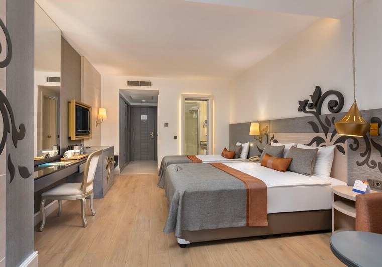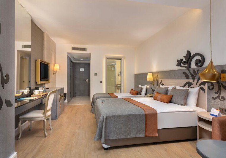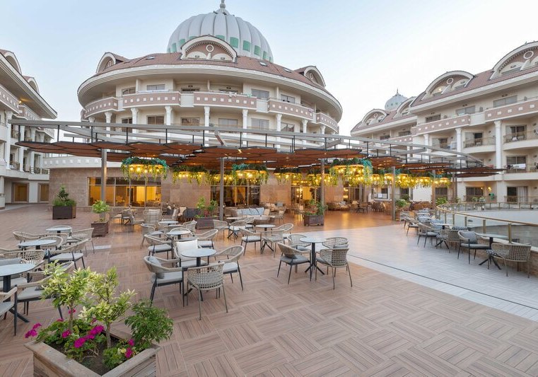 Kirman Belazur Resort & Spa kombiniert direkte Strandlage, vielfältige Pools mit Rutschen und abendliche Shows zu einem klar strukturierten Aufenthalt. Ihr wechselt leicht zwischen Aktivität und Ruhe, mit kurzen Wegen vom Zimmer zum Strand, zur Pier-Bar oder ins Spa.