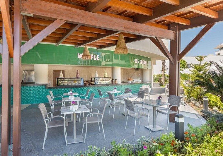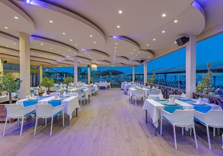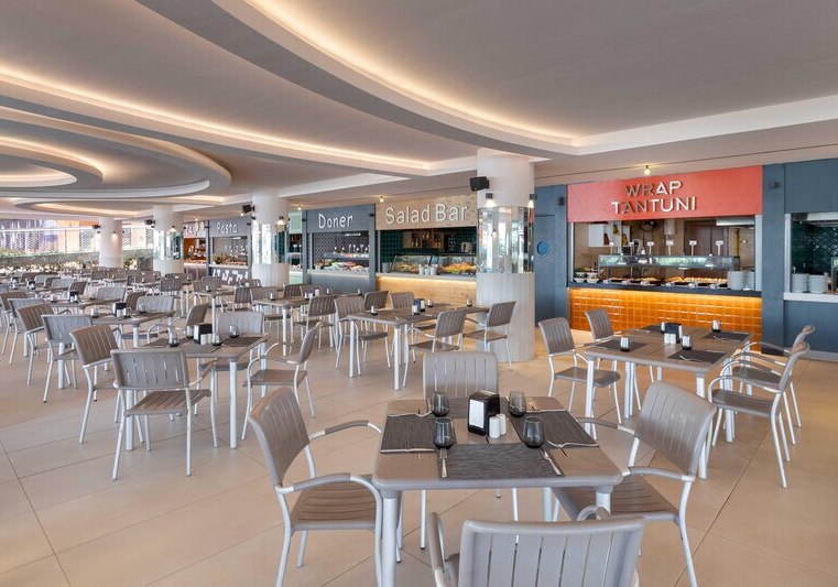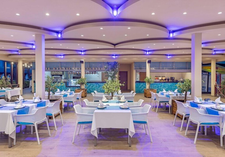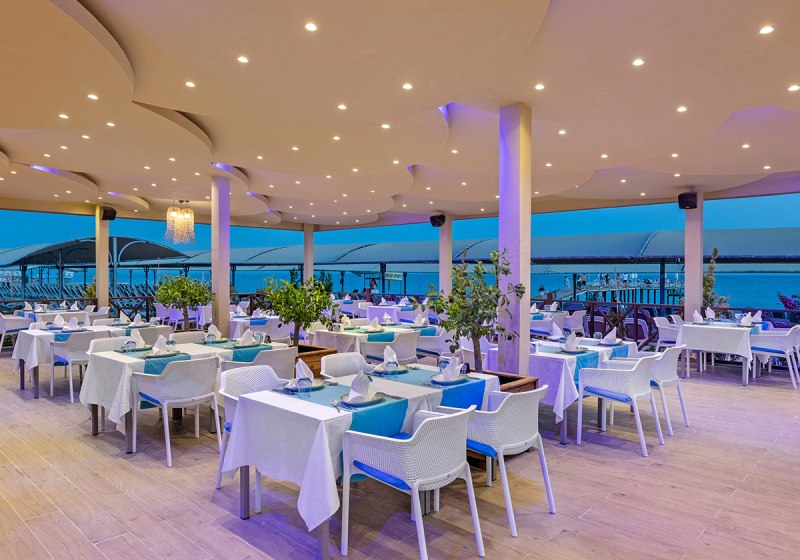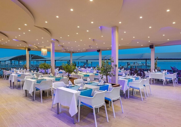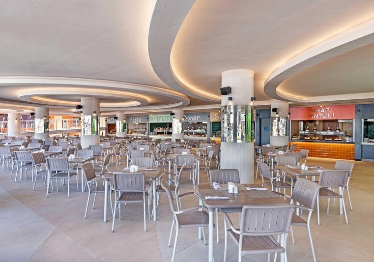 Die Stimmung ist entspannt und zugleich dynamisch: tagsüber Rutschen, Strand und Sonnenterrassen, abends Shows in der Arena oder ein Drink in einer der Bars. Kulinarisch bleibt Ihr dank Hauptrestaurant mit Terrasse, À-la-carte-Optionen und Snackspots flexibel. Das Spa mit Hamam und Sauna bringt angenehme Gegenpole zum Strandtag. Highlight: Direkte Strandlage mit großem Steg und Pier-Bar, ideal für Euren Strandferien.