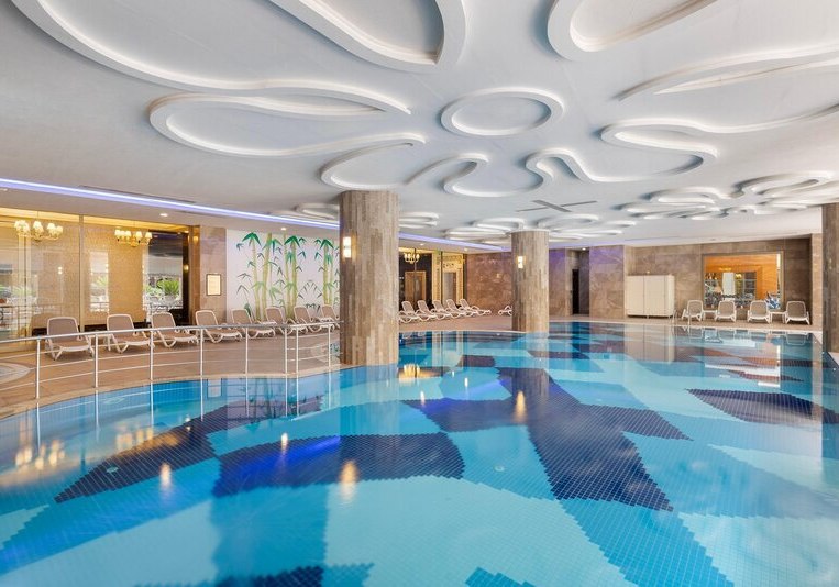 • Liegestühle • Hallenbad • Außenpool (kostenfrei, beheizt, rollstuhlgeeignet, überdacht, unüberdacht, saisonal) • Sonnenschirme • Pool • Poolbar (saisonal) • Sonnenterrasse • Badetücher • Wasserrutsche • Dachterrasse (rollstuhlgeeignet, unüberdacht) • Wasserpark (kostenfrei, Aquapark for adults) • Infinitypool (Zugang über Rampe, Mon-Sun 08:00-18:30 Holidays 08:00-18:30)