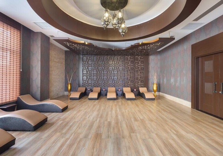 Wellness• Anti-Aging • Beautyfarm (gegen Gebühr) • Schönheitssalon • Hamam • Massage • Sauna (kostenfrei) • Spa • Dampfbad (auf Anfrage, kostenfrei) • Aromatherapie • Wellness-Center (gegen Gebühr, Klimaanlage, Vorreservierung erforderlich) • Lichttherapie • Massagestuhl • Ruheraum