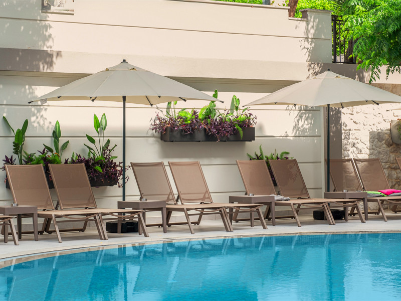 • Liegestühle • Hallenbad (saisonal) • Außenpool (kostenfrei) • Sonnenschirme • Poolbar • Sonnenterrasse • Pool