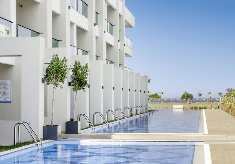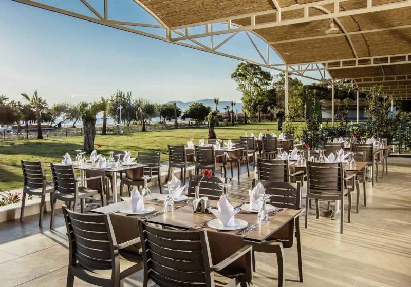 Das Resort bündelt 388 Zimmer, kurze Wege und klare Struktur: Empfangshalle mit Rezeption, WLAN inklusive im gesamten Hotel, Geschäfte, Friseur und Gartenanlage. Ein großer Süßwasser-Swimmingpool trifft auf ein Hallenbad; am Strand und Pool sind Liegen, Sonnenschirme und Badetücher inklusive. Die Lobbyterrasse bietet luftige Sitzplätze mit Blick ins Geschehen.