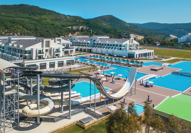 Für produktive Stunden: Business-Center, fünf Konferenz- und Bankettsäle, Coworking-Space sowie Technik von Beamer bis Projektor. Eine Game-Hall, Bibliothek, Theatersaal und ein Wasserbereich mit Rutschen runden das Angebot ab. Öffentliche Minibusse verbinden Euch bequem mit Kusadasi. Highlight: Umfassende Infrastruktur – Erholung, Shopping und Arbeiten an einem Ort.