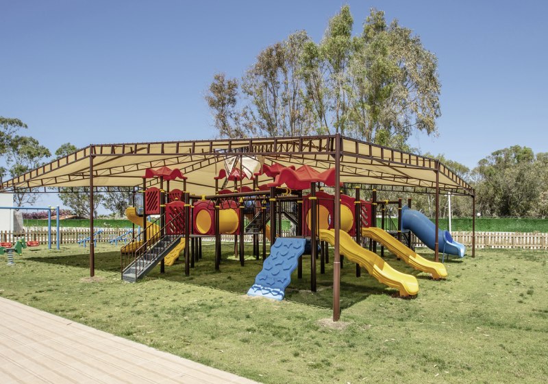 Für Kinder steht ein Miniclub (4–12 Jahre) mit altersgerechtem Programm bereit; die Mini-Disco setzt einen munteren Schlusspunkt an den Tag. Draußen warten Rutschen und ein eigener Kinderbereich am Pool. Wer es ruhiger mag, nutzt die Lobbyterrasse, während die Abendunterhaltung für leichte Bühnenstimmung sorgt. Highlight: Familienfreundliche Struktur – Miniclub, Mini-Disco und Kinderbecken bündeln Angebote.