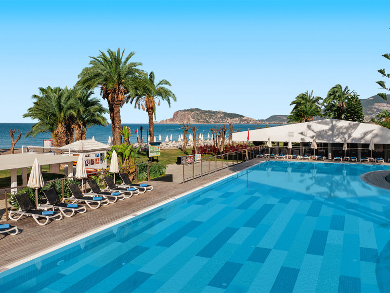 Das Labranda Alantur Resort verbindet direkte Strandlage in Kestel mit einem strukturierten Resortaufbau, der Wege kurz hält und Angebote klar zoniert. Pools mit Rutschen, Adults-only-Relaxbereich und beheiztes Hallenbad setzen unterschiedliche Schwerpunkte. Kulinarisch erwartet Euch All-Inclusive mit Live-Kochen, À-la-carte-Optionen und Strandbar.