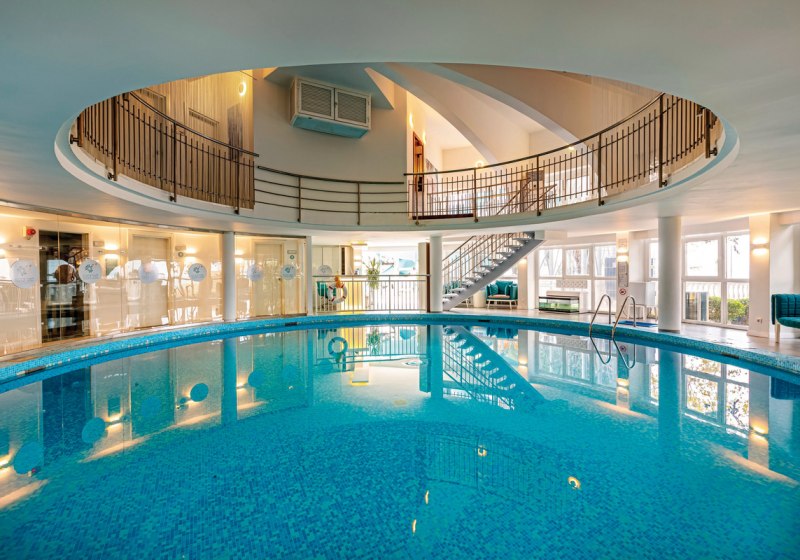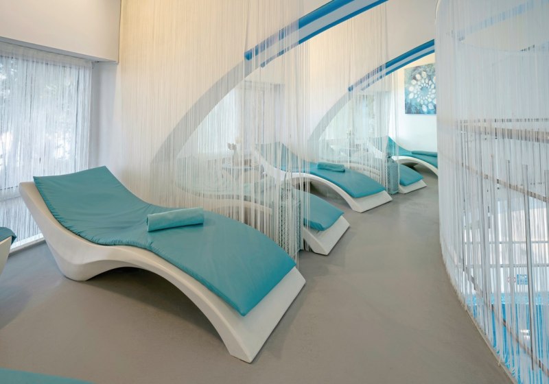 Der Spa-Bereich ergänzt das Badeangebot mit Sauna, Dampfbad und Hamam. Massagen und Anwendungen sind vorgesehen, ebenso ein Schönheitssalon. Das beheizbare Hallenbad schafft wetterunabhängige Wasserzeit und einen ruhigen Rahmen außerhalb der Außenpools.