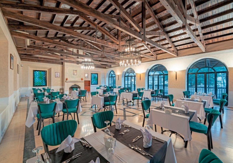 Im Hauptrestaurant mit Terrasse speist Ihr mit Blick ins Freie, ergänzt von zwei À-la-carte-Restaurants. Die kulinarische Basis umfasst All-Inclusive mit Live-Kochen, Snacks sowie alkoholfreien und alkoholischen Getränken. Vegetarische Optionen, Kindermenüs, Diät- und glutenfreie Speisen sowie Halal- und Bio-Angebote erweitern die Auswahl.