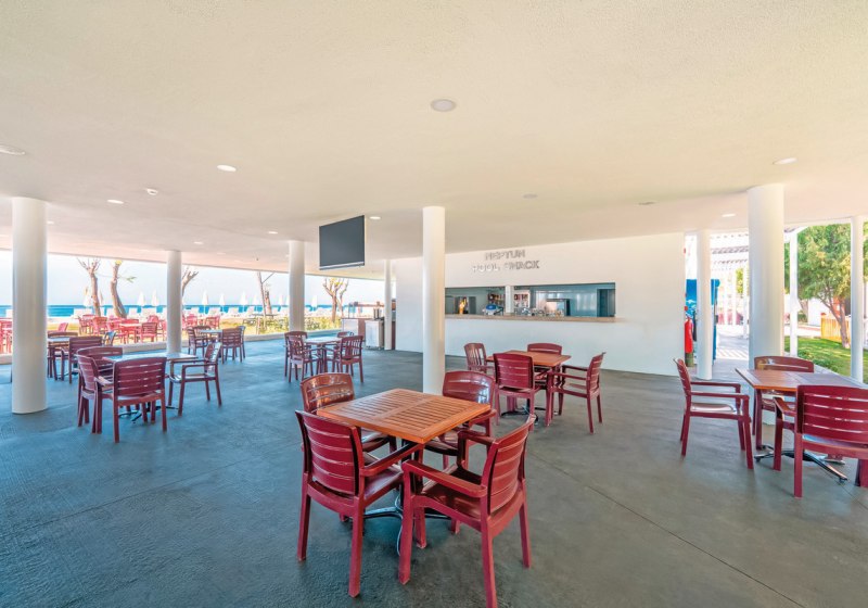 - Terrassenplatz: Hauptrestaurant mit Terrasse verbindet Buffetvielfalt und Außenbereich.