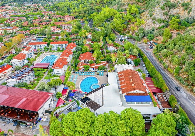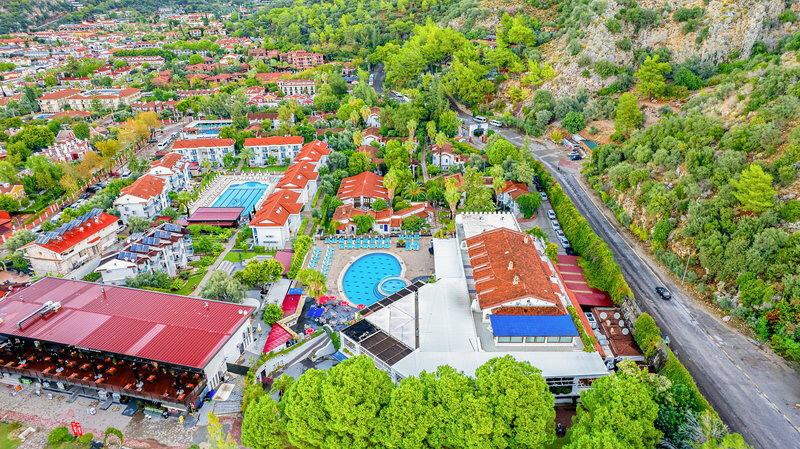 Ihr profitiert von Abendshows, Miniclub, Außenpool mit Kinderbecken sowie Sauna und Hamam für den ruhigen Abschluss. Das Frühstücksbuffet und zwei Bars halten den Tag in Bewegung. Wer Ölüdeniz und Umgebung erkunden möchte, hat mit den nahen Distanzen die passende Basis für spontane Ausflüge.