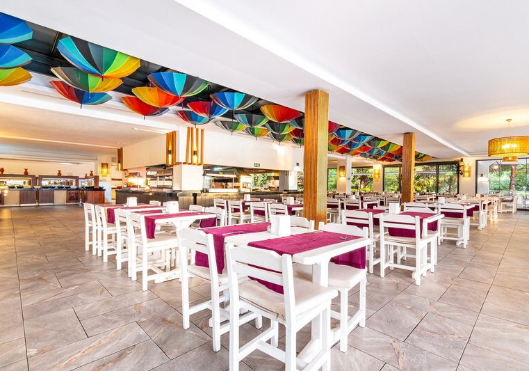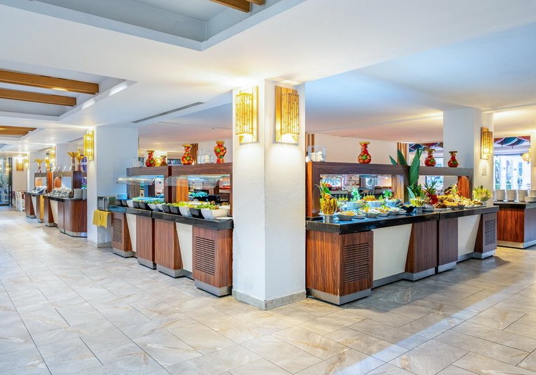 Die Gastronomie ist bewusst geradlinig angelegt: morgens Buffet, tagsüber und abends Bars mit Drinks und kleinen Pausenmomenten. So bleibt Ihr flexibel im Ablauf und entscheidet, ob Ihr eher früh an den Strand geht oder den Vormittag am Pool verbringt. Die Wege sind kurz, die Struktur klar – ideal, wenn Ihr während Eurer StrandFerientage keine Umwege wollt.