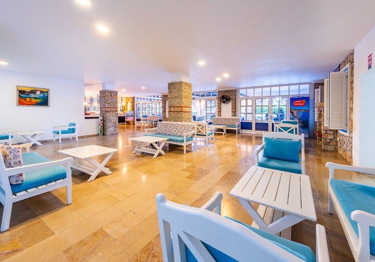 Ihr profitiert zudem von Services wie Geldwechsel, Parkplatz, Mietwagenverleih, Friseur sowie Wäsche-/Bügelservice und medizinischem Dienst (jeweils gebührenpflichtig). Zimmerservice ist ebenfalls gegen Gebühr verfügbar. Die öffentlichen Bereiche wirken funktional und übersichtlich, Wege bleiben kurz. So organisiert Ihr Euren Tag unkompliziert zwischen Strand, Pool und Ort – mit ausreichend Infrastruktur für kleine Besorgungen und verlässlichem Basisservice.