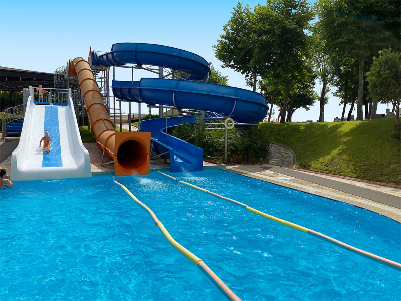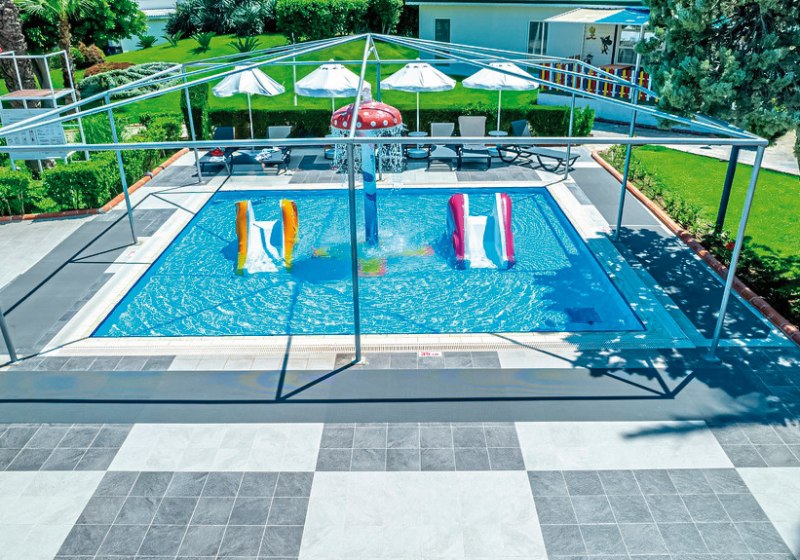 • Liegestühle • Außenpool • Sonnenschirme • Poolbar • Sonnenterrasse • Badetücher • Wasserrutsche • Wasserpark • Pool