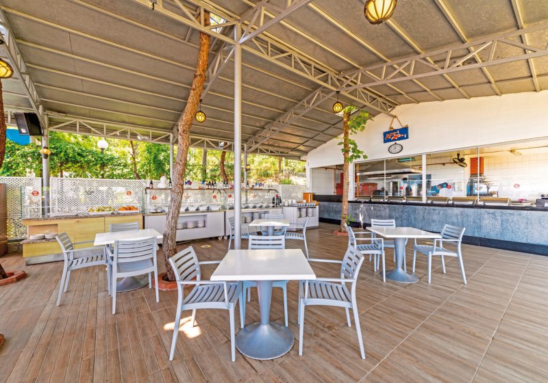 Tagsüber belebt das Animationsteam die Anlage mit sportlichen Spielen, Kursen und kleinen Wettbewerben, während die Poollandschaft mit drei Wasserrutschen für Tempo sorgt. Am frühen Abend wechselt die Stimmung ins Theatralische: Im Amphitheater laufen Shows und Programme, die als gemeinsamer Treffpunkt für den Ausklang nach der Sonne dienen. Danach steht die Diskothek bereit.