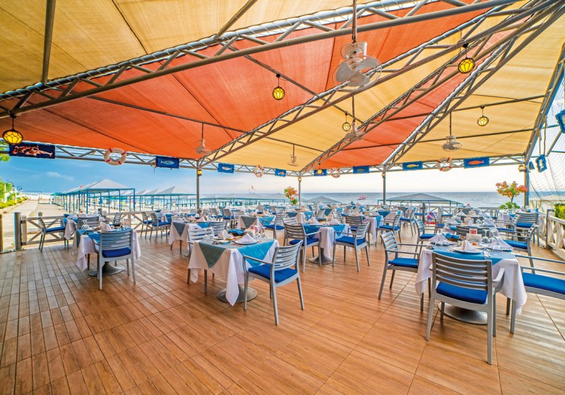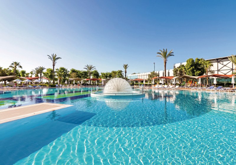 Euch erwarten All-Inclusive-Komfort, ein Buffetrestaurant mit Terrasse, mehrere À-la-carte-Optionen sowie Beach- und Pool-Snacks für den schnellen Hunger zwischendurch. Tagsüber läuft die Animation, abends wird im Amphitheater Programm geboten, später zieht es Euch in die Diskothek. Kinder toben zwischen Miniclub, Spielplatz und separatem Kinderpool. Wer zwischendurch entspannen möchte, nutzt Sauna und Türkisches Bad oder lässt im Beautycenter nacharbeiten. Die Ausstattung reicht vom 24-Stunden-Empfang über Shops und Friseur bis hin zu Konferenzraum und Bibliothek. Highlight: Direkte Kiesstrandlage mit Badesteg und lebendigen Poolzonen für abwechslungsreiche Tage.