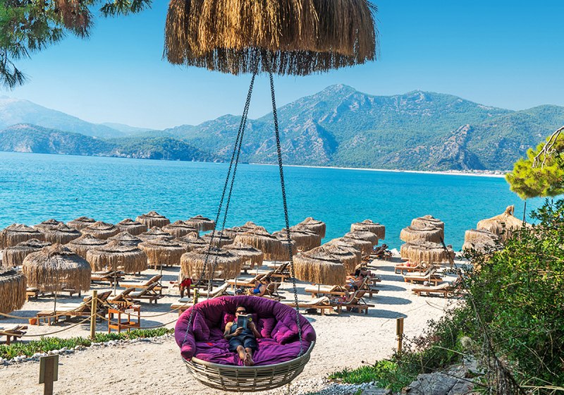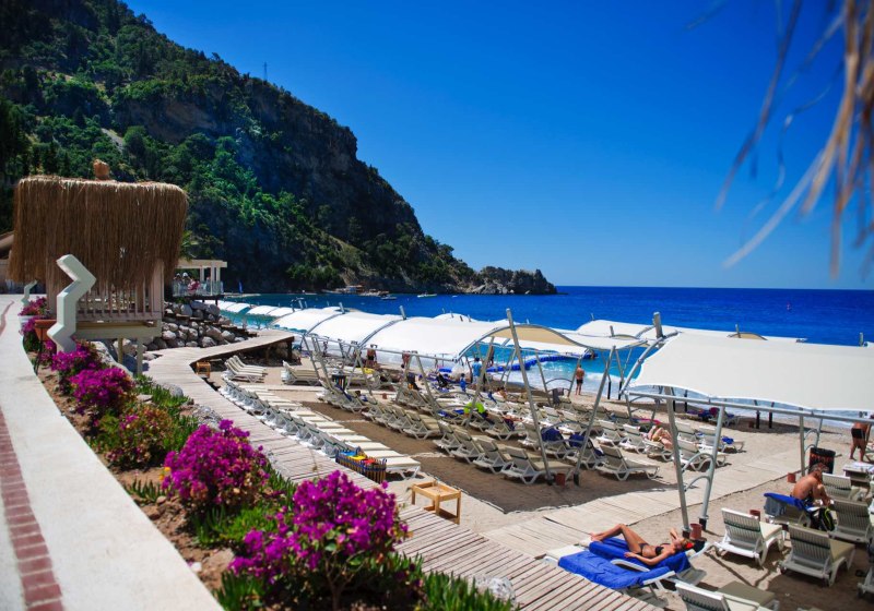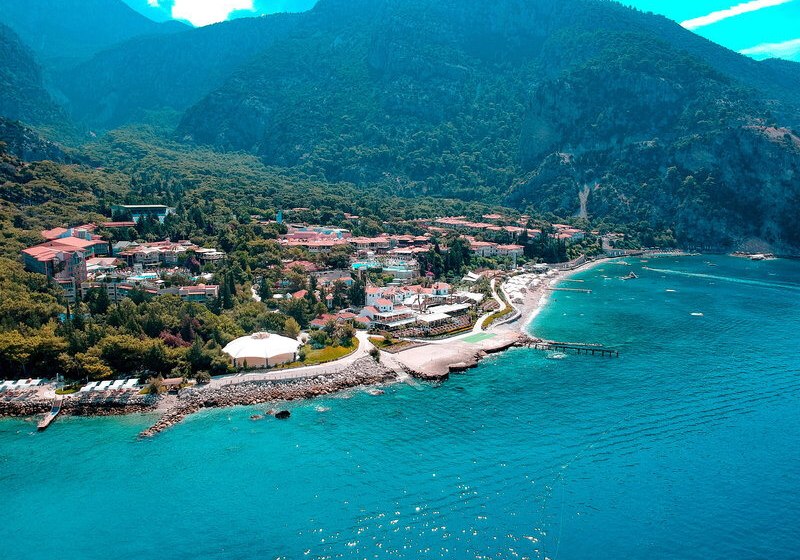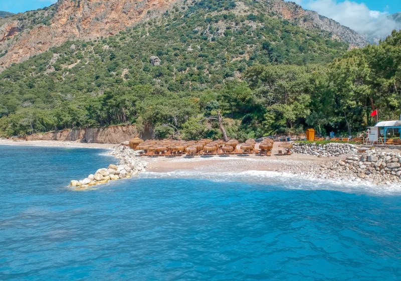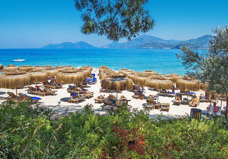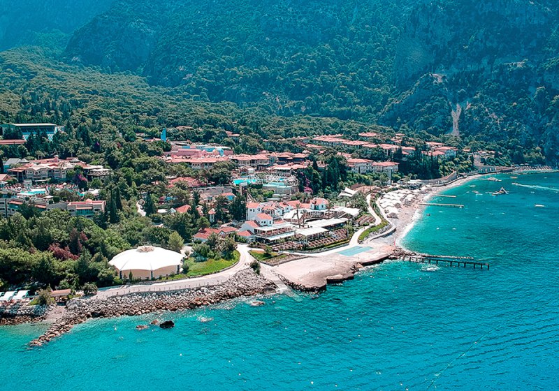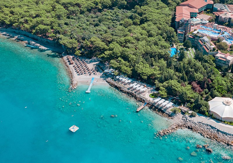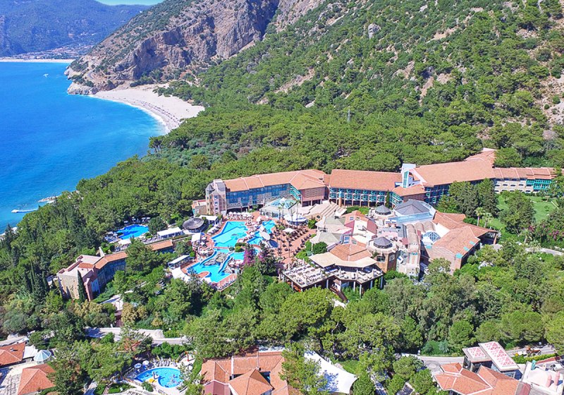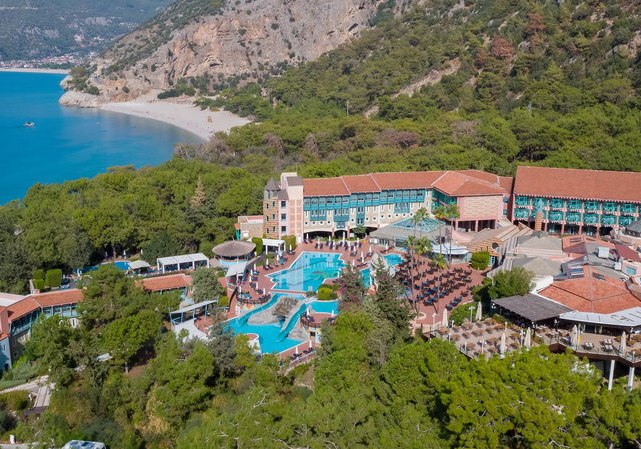 Ihr wohnt direkt an der hoteleigenen 950 Meter langen Lagune mit Sand‑/Kiesstrand, unmittelbar neben dem Kıdrak Strand. Bis zur Ölüdeniz‑Bucht sind es etwa 3 Kilometer, nach Fethiye rund 17 Kilometer. Das Setting verbindet Badefreuden an der Lagune mit der landschaftlichen Vielfalt der Region um Ölüdeniz.