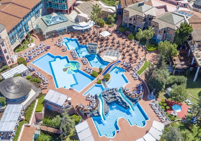 In der Gesamtanlage stehen zusätzliche Annehmlichkeiten bereit, darunter Theatersaal, Konferenz‑ und Banketträume, Geschäfte, Friseur, Arztservice, Wäscherei, Business‑Center, hoteleigener Shuttleservice sowie Mietwagen‑ und Fahrradverleih. Auch Indoor‑Pool, Wasserpark und Wasserrutschen gehören zum Angebot des Resorts. Highlight: Strukturiertes Strand‑ und Pool‑Set‑up mit Handtuchservice.
