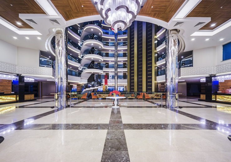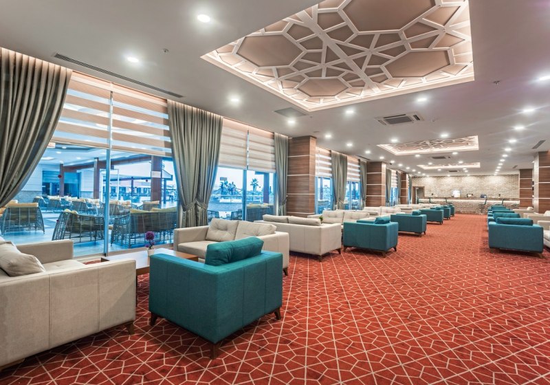 Im Lonicera Resort & Spa wohnt Ihr direkt am flach abfallenden Sandstrand von Incekum – mit kurzen Wegen vom Zimmer ans Wasser. Die weitläufige Anlage mit Hauptgebäude über sechs Etagen und mehreren Bereichen wirkt lebendig und vielseitig. Familien findet Ihr hier ebenso wie Aktivurlauber, die den großen Aquapark mit 19 Wasserrutschen nutzen. Wer es ruhiger mag, steuert die Süßwasserpools, die Kinderbecken oder den Strand mit bereitgestellten Liegen, Auflagen, Badetüchern und Sonnenschirmen an. WLAN begleitet Euch in der gesamten Anlage, und in den Geschäften stöbert Ihr nach Nützlichem und Souvenirs.