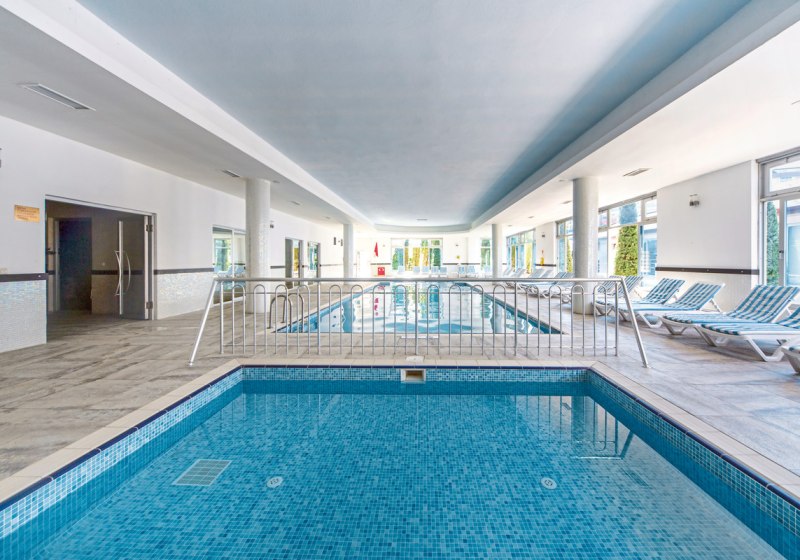 • Liegestühle • Hallenbad • Außenpool • Sonnenschirme • Pool • Poolbar • Sonnenterrasse • Badetücher • Wasserrutsche • Wasserpark