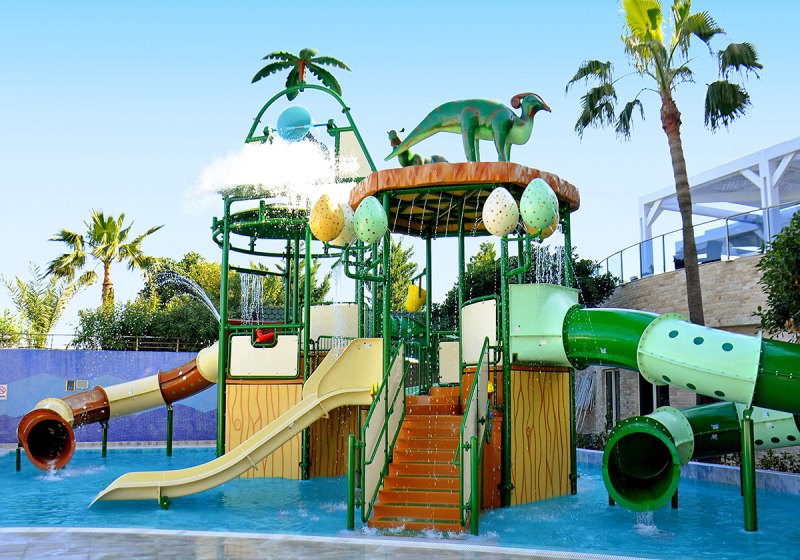 - Rutschen-Pool: Außenpool mit fünf Rutschen und separatem Kinderbereich.