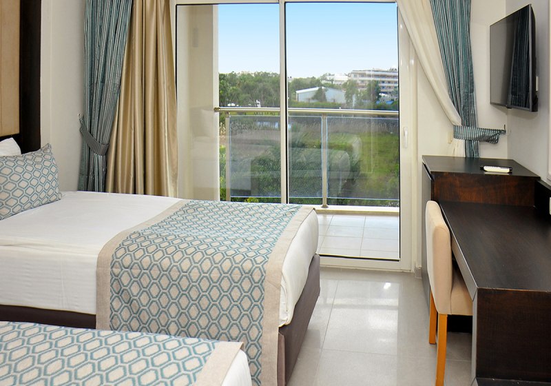 Die Anlage umfasst 418 Zimmer auf sechs Etagen mit Liften. In der Lobby mit Rezeption und Sitzgruppen findet Ihr einen ruhigen Start- und Treffpunkt. Geschäfte, Friseur und Konferenzräume erweitern die Infrastruktur. WLAN steht in der gesamten Anlage und sogar am Strand zur Verfügung.