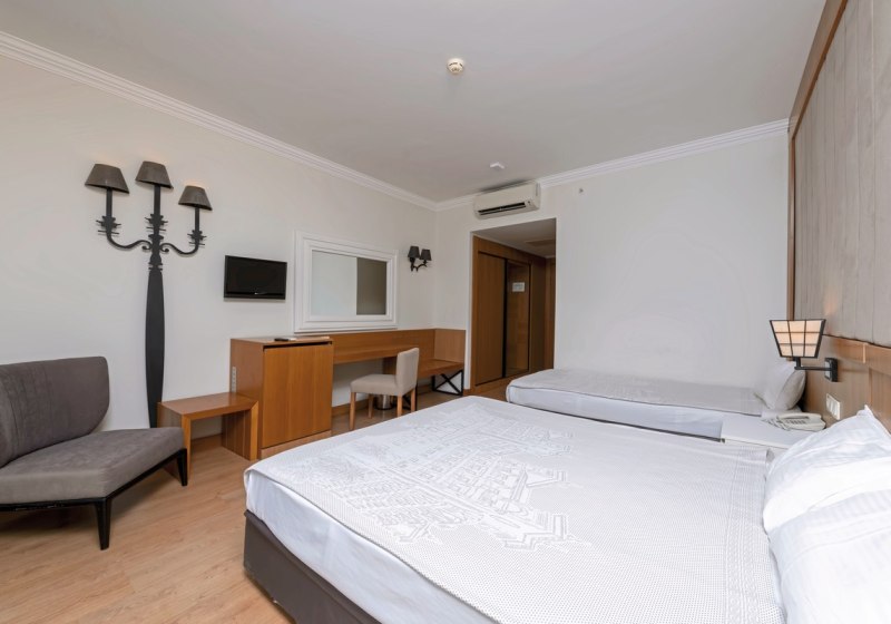 - Kernkomfort: Dusche, Klimaanlage, Minibar, Safe und LCD-Sat-TV.