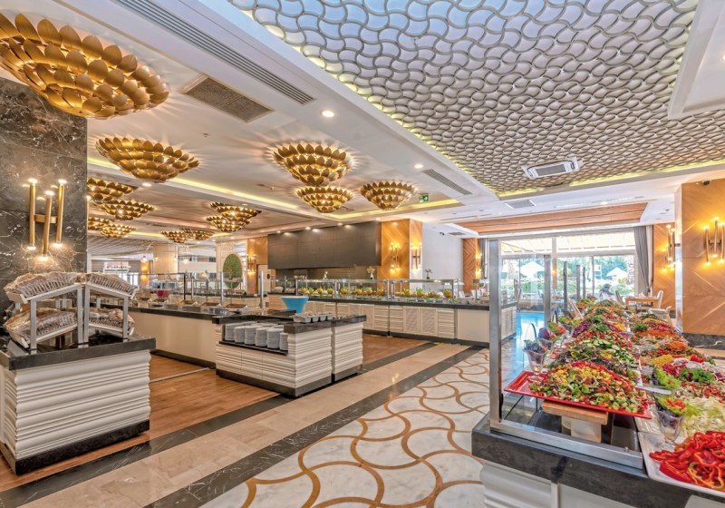 - Buffet & Terrasse: Hauptrestaurant mit Terrasse bietet klare Auswahl und Wege.