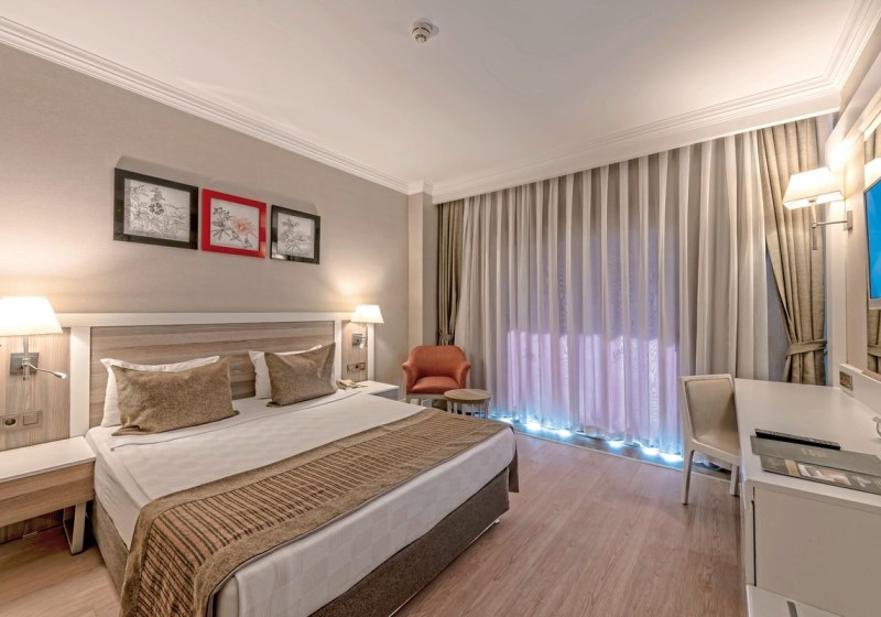 Die Zimmer setzen auf funktionale Ausstattung: Dusche/WC, Föhn, individuell regulierbare Klimaanlage, Minibar, LCD-Sat-TV, Telefon, Safe und Laminatboden. Ein Balkon gehört zum Standard und erweitert den Raum ins Freie. Für preisbewusste Aufenthalte gibt es Super-Sparzimmer mit französischem Balkon. Die Gestaltung bleibt aufgeräumt und alltagstauglich, mit klaren Staubereichen und robusten Materialien.