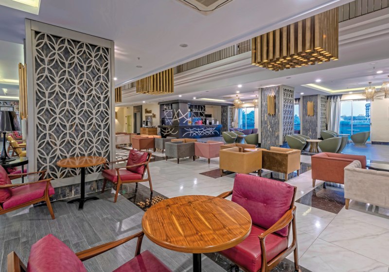 Im LRS Port River Hotel & Spa trefft Ihr auf ein lebendiges Resort, das moderne Urlaubsfreude mit klarer Struktur verbindet. Weitläufige Poolbereiche mit sechs Wasserrutschen, eine lichte Lobby mit Rezeption und Lounge sowie kurze Wege zu Bars und Restaurants prägen den Aufenthalt. Familien finden mit Miniclub und Kinderbecken verlässliche Abwechslung, Aktivfans nutzen Fitnessraum und Spielfelder. Wer Geselligkeit sucht, richtet den Blick auf das tägliche Animationsprogramm und die Abendshows, während Ruhe am Strand mit bereitgestellten Liegen und Schirmen wartet.