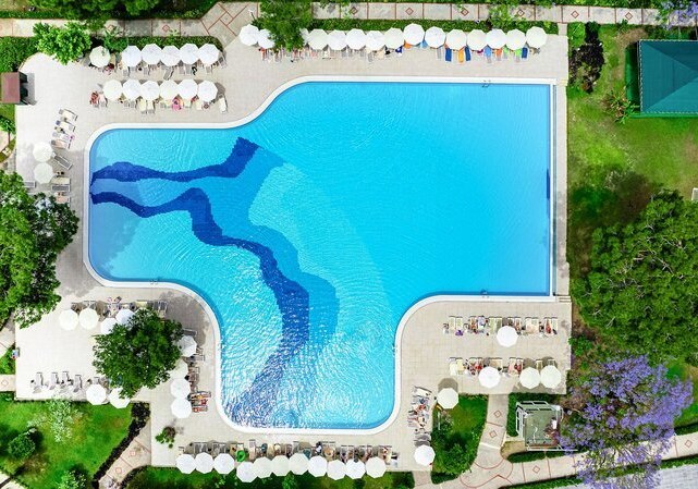 Zwischen zwei Außenpools mit Wasserrutschen, Hallenbad und privatem Sandstrand wechselt Ihr mühelos vom Baden zum Programm. Abends tragen Shows und Live-Musik die Stimmung, tagsüber übernehmen Sport, Miniclub und ruhige Ecken im Garten. Servicepoints wie 24-Stunden-Rezeption, Shops und Konferenzräume geben Eurem Aufenthalt Struktur – unkompliziert, klar, angenehm.