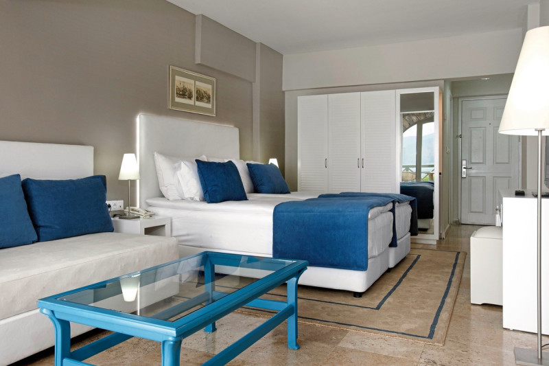 • Klimaanlage • Balkon (je nach Zimmerkategorie) • Haartrockner • Sitzecke (je nach Zimmerkategorie) • Minikühlschrank • Minibar • Telefon • Safe • Meerblick (je nach Zimmerkategorie) • Schlafsofa • Terrasse • Fernseher (Sat-TV) • rollstuhlgerechte Zimmer (auf Anfrage) • WiFi (kostenfrei) • Bergblick • Schallisolation