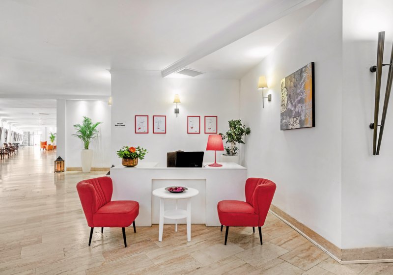 Im Haus findet Ihr Rezeption, Geschäfte, Friseur und verschiedene Bars. Ergänzend stehen Dienstleistungen wie Wäsche- und Zimmerservice, medizinische Betreuung sowie Mietwagen- und Fahrradverleih zur Verfügung. Für Abendformate bieten Saal- und Bühnenbereiche den passenden Rahmen.