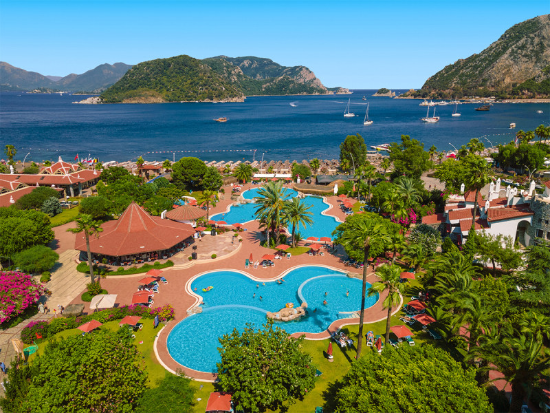 Im MARTI Resort wohnt Ihr in einem Resort mit direkter Strandnähe, nur durch eine Promenade vom Sand‑Kies‑Ufer getrennt. Weitläufige Außenbereiche mit zwei Pools, Gärten und Terrassen prägen den Tag; abends sorgen Shows und Livemusik für Stimmung. Highlight: Strandnähe mit Promenade, kurzer Weg zum Wasser und weite Blicke.