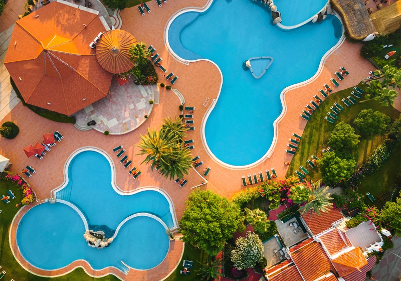 - Zwei Außenpools: Großzügige Poolbereiche mit Liegen und Sonnenschirmen.